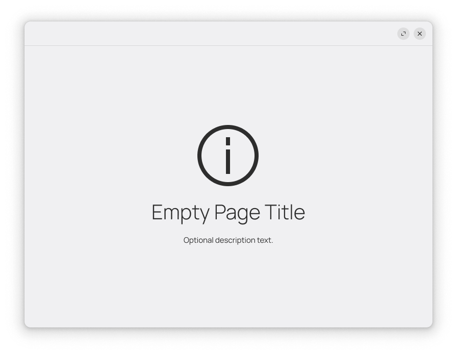 Empty pages fill a view with an image or a symbolic icon, a title, and a description. They are used to fill a view that would be populated with content.